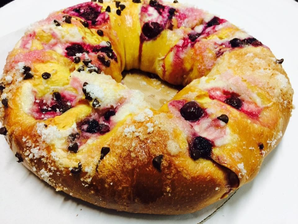 MASA DE ROSCON BAÑADA DE CHOCOLATE Y ADORNADA